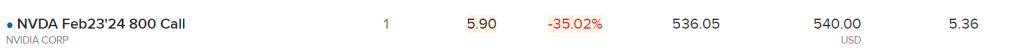 Možnosti byly v podstatě dvě. Tou první byla varianta, že využiju ne zrovna vysokou hotovost na účtu a za párset dolarů nakoupím call opci s nízkou premií. Druhá varianta byla, že prodám jinou pozici v portfoliu a peníze přesunu do nVidie, a to pomocí bezpečnější call opce, která má ale výrazně vyšší premium.