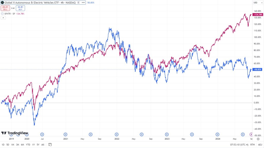 Soláry jsou extrémní případ, ale v nabídce je taky elektromobilita. Fond otevřený těsně před covidem, logicky v něm je Tesla, tak by to nemuselo vypadat jak z hororu. Kumulativní underperformance o 80 procentních bodů vůči indexu je sice děsná, ale aspoň jste ty peníze neprodělali…